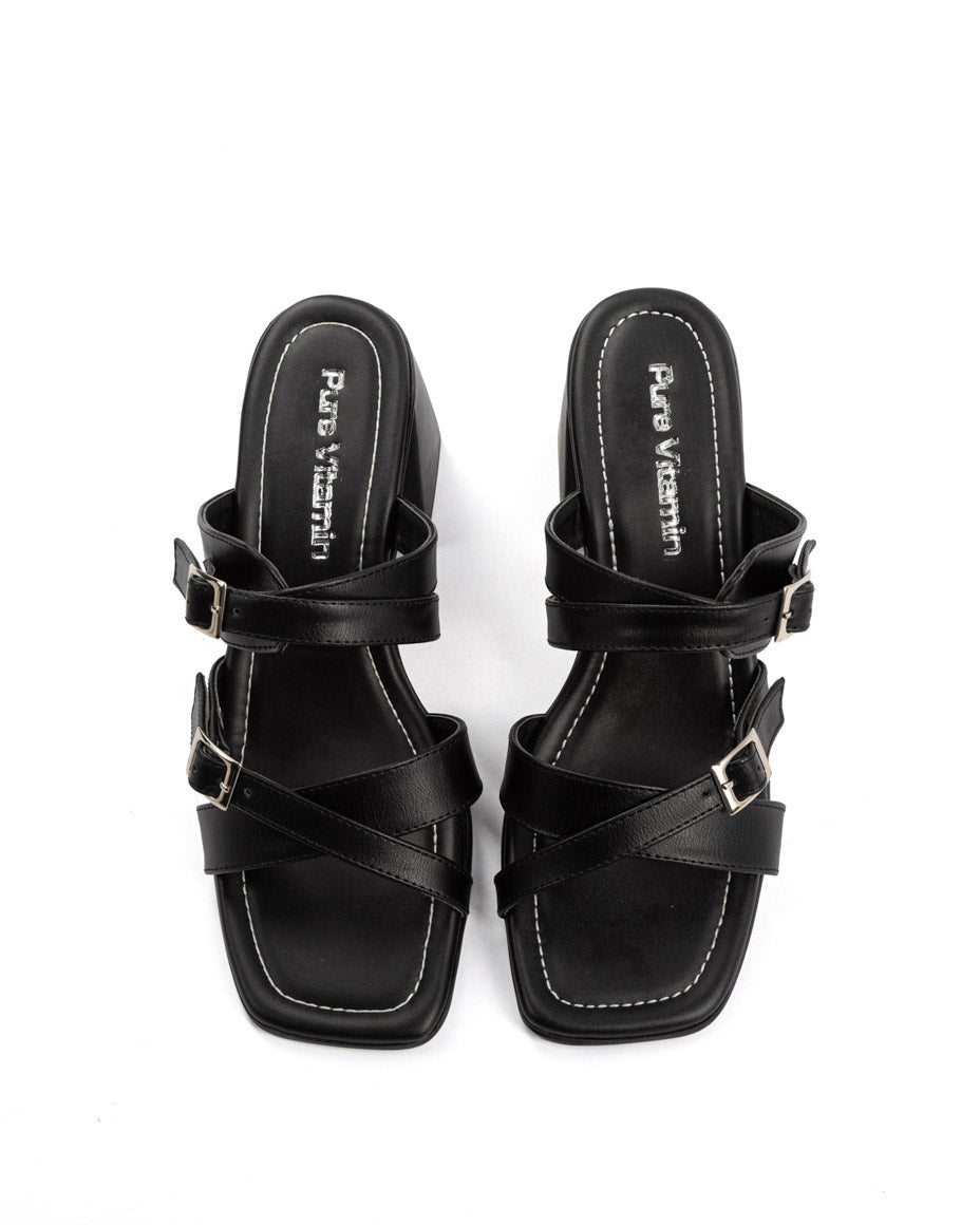 # ARIANA NEGRO Sandalias diseñadas para quienes buscan estilo sin compromisos. El modelo Ariana en negro combina versatilidad absoluta con un diseño contemporáneo que funciona tanto en looks casuales como en propuestas más refinadas. Su silueta elegante se adapta a cualquier ocasión, mientras que el color negro garantiza coordinación sin esfuerzo con tu guardarropa. Perfectas para transitar la temporada con confianza y presencia.